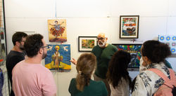 Exposição: As obras foram exibidas em paredes ou painéis, sendo imprescindível que todas estivessem equipadas com suportes adequados na parte de trás (ganchos, arames, etc.), para garantir uma instalação segura e eficiente.